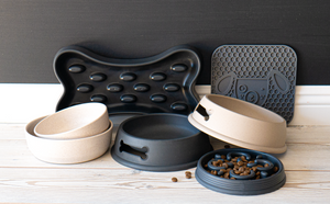 Our new collection in WHEAT POLYPRO for pets offer minimalist feeding bowl shapes and easy-care mats to contain any spills or mess.