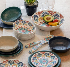 Each melamine collection has its own style with a variety of shapes, colors, and print and pattern.